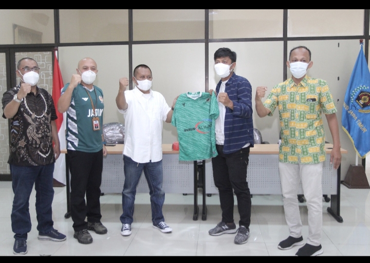 Surabaya, areknews – Kepala Dinas Pemuda dan Olahraga, Pulung Chausar dan Ketua PWI Jawa Timur, Lutfil Hakim melepas secara resmi Tim sepakbola Siwo PWI Jatim untuk mengikuti Turnamen Sepakbola Piala Wali Kota Surakarta 2022 dalam rangka peringatan Hari Pers Nasional, di Aula Gedung PWI Jatim, Jumat (11/2).