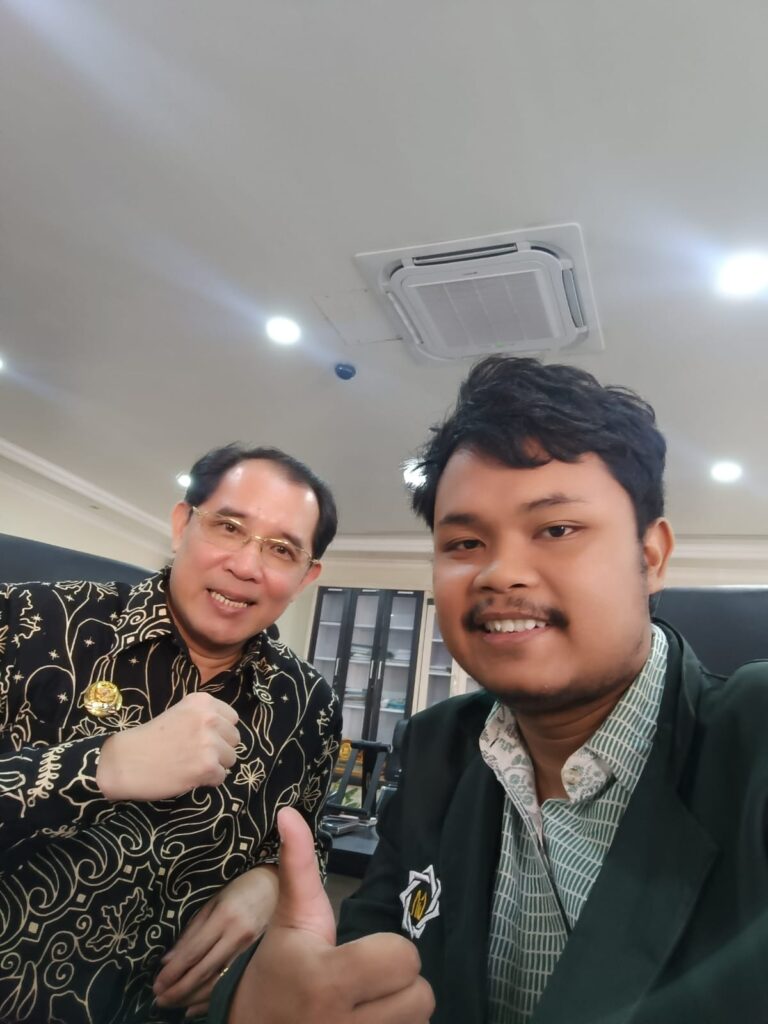 Anggota Komisi D DPRD Kota Surabaya Dr. Michael Leksodimulyo, MBA, M.Kes saat bersama Mahasiswa UIN Sunan Ampel Rachmat Indra Wiyana. Ist